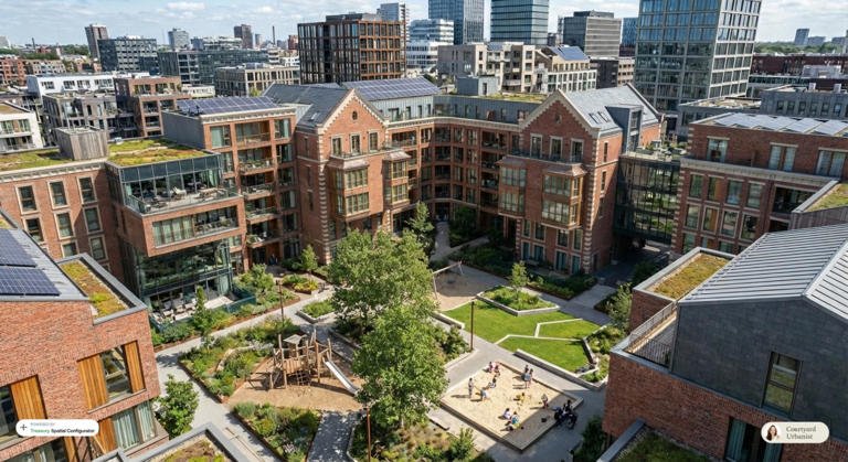 And they don’t just have to be Copenhagen cosplay — they can be built with any architectural style. Here is one I generated inspired by the red-brick architecture of Boston (using an AI-powered visualization tool created by a collaboration between Courtyard Urbanist and the design technology company Treasury):